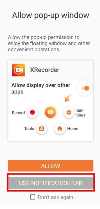 Open XRcorder and Select “USE NOTIFICATION BAR”