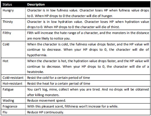 Characters have different status bonuses in specific environments and situations. For example, when you enter the swamp, you will get a deceleration effect, and the effect lasts until you get out of the swamp.