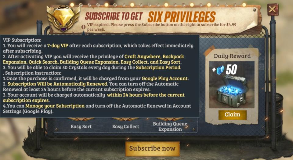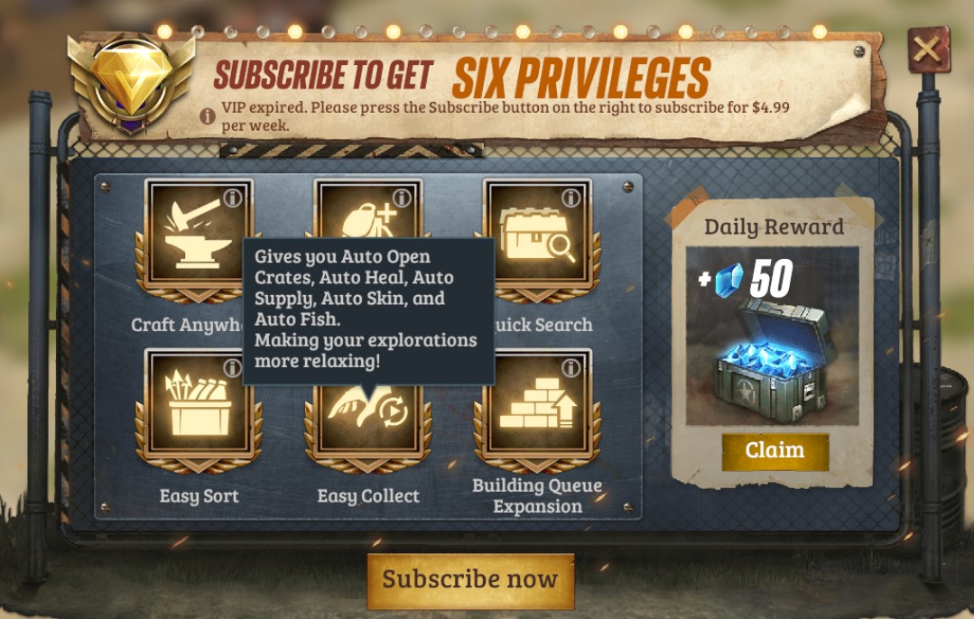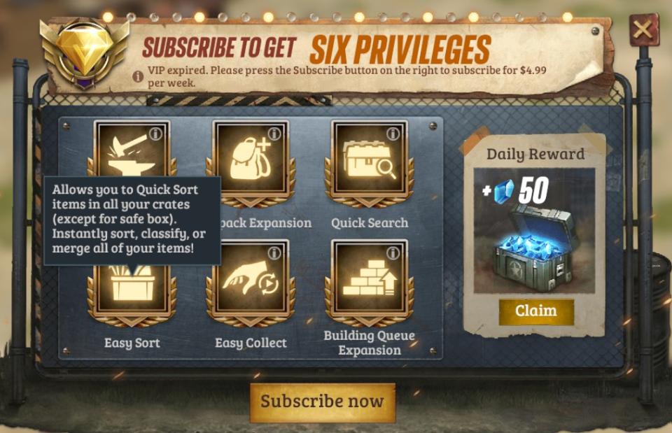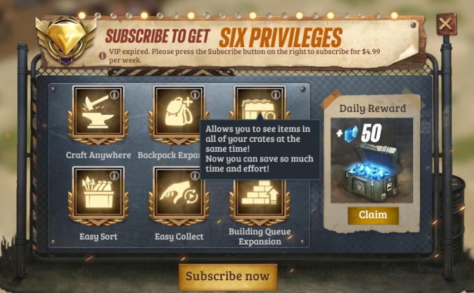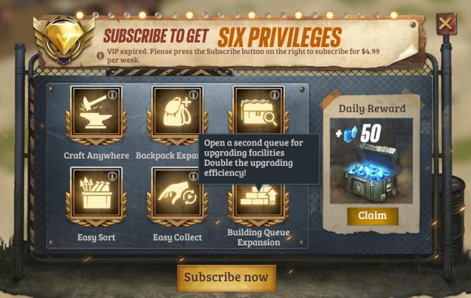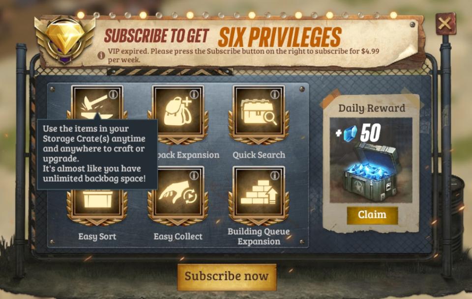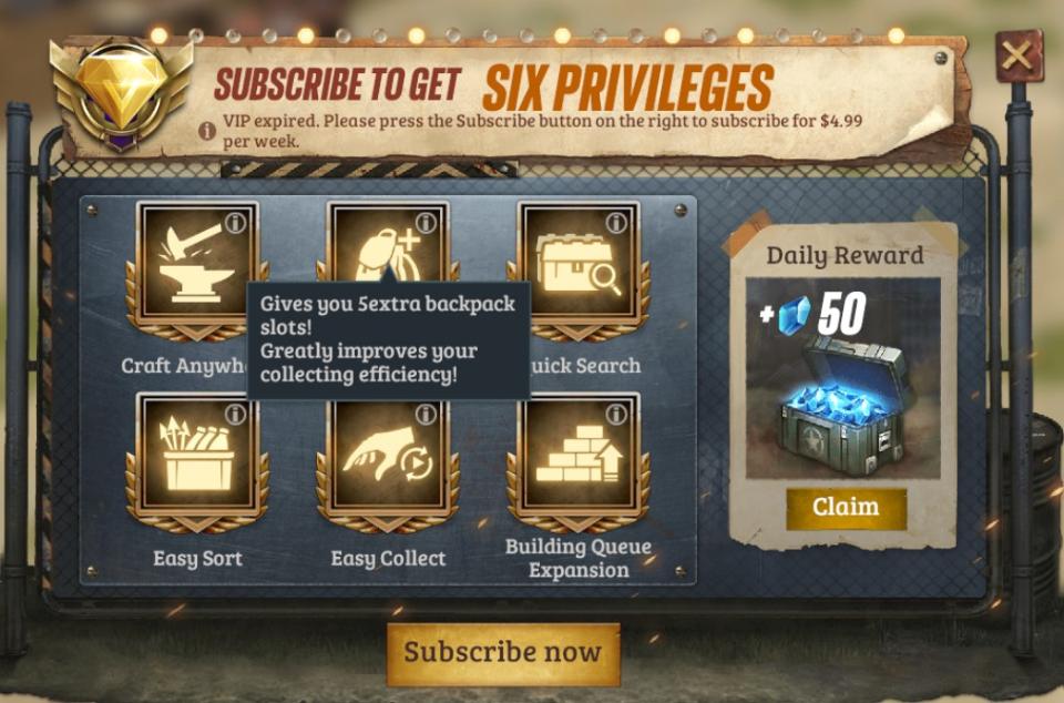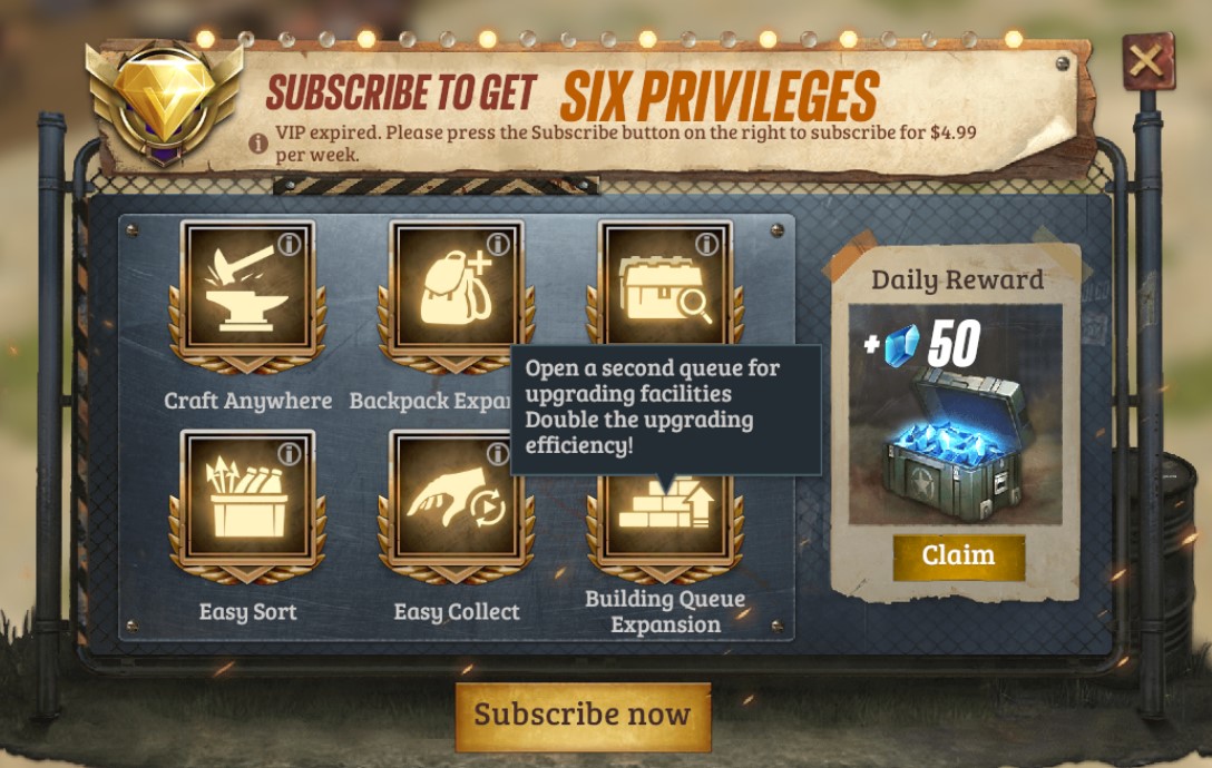2. Unlocks Craft Anywhere, Backpack Expansion, Quick Search, Building Queue Expansion, Easy Collect, and Easy Sort.