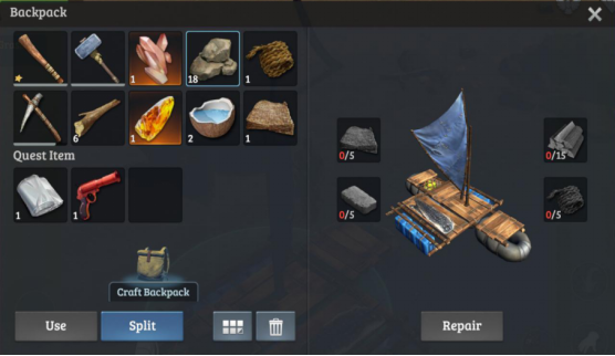 You have to repair the Sail Boat before it can be used. Repair materials can be obtained through gathering and producing.