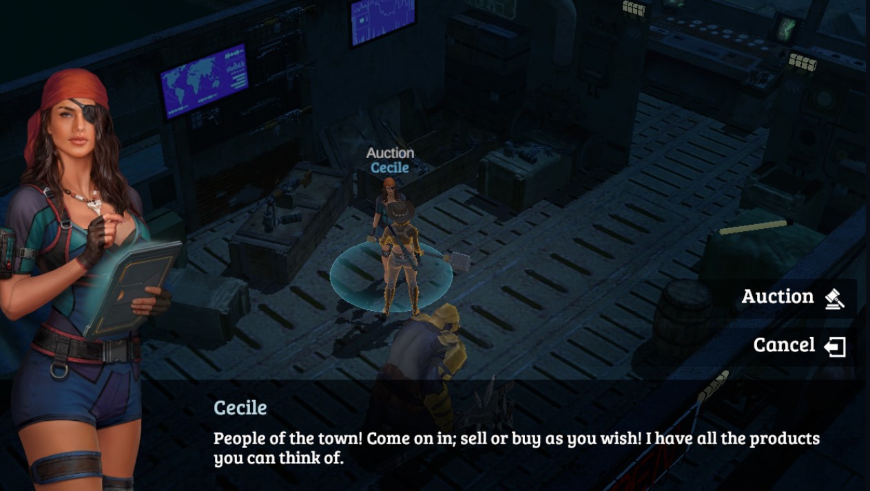 Auction is located on an abandoned cargo ship in Southeast Salvation Town. Talk to the Auctioneer Cecile to enter the Auction menu.