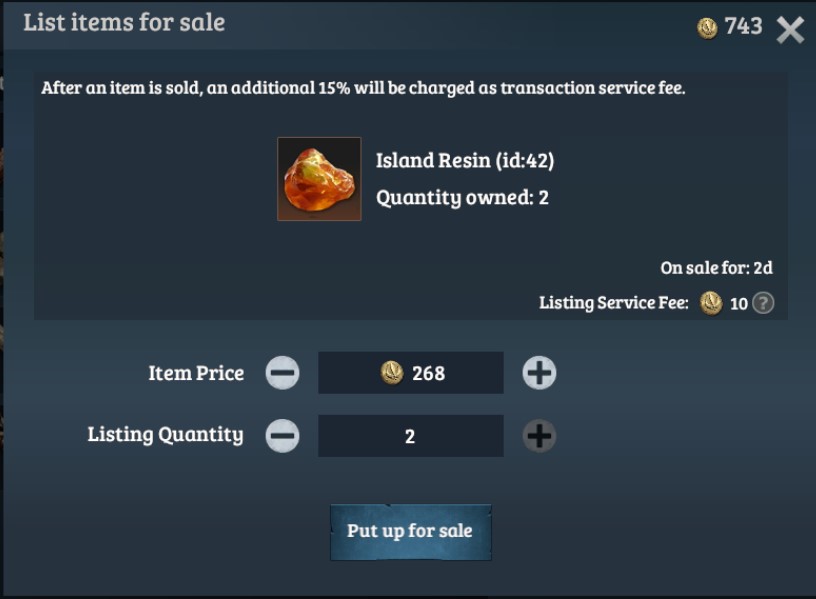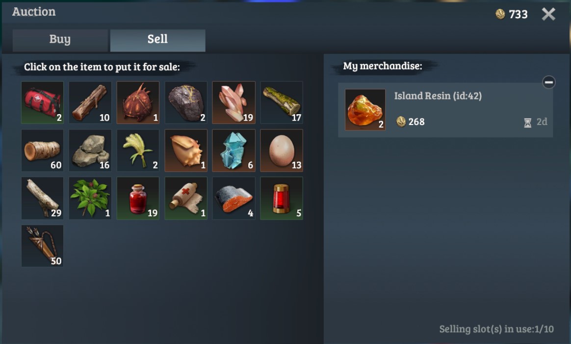 On the Sell tab, you can choose items from your backpack or storage crates and put them up for sale.