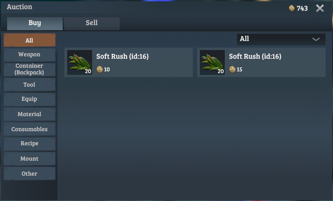 Players can browse and purchase a variety of items that other players put up for sale, including weapons, backpacks, tools, gears, materials, consumables, recipes, mounts etc.