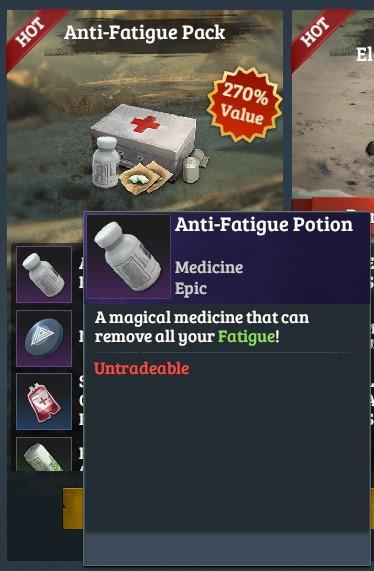 3. Resting in the Tent or using the Anti-Fatigue Potion from the shop (temporarily removed) can reduce fatigue.