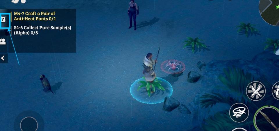 Tap the “?” mark on the left side of the screen to open the quest panel.