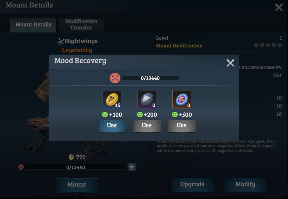 After a mount is unlocked, its mood will slowly but gradually decrease. You can use mount toys to recover its mood.