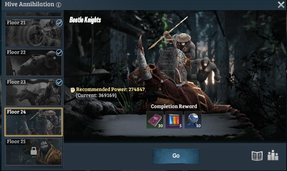 Tap the Activity Overview icon on the top right, and you can enter Hive Annihilation from the Get Stronger tab as illustrated below: