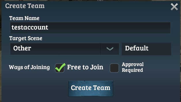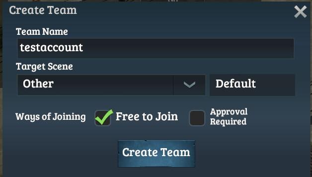 If you decide to create a team, you may specify the target scene of the team as well as the requirement to join.