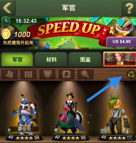 回收军官可以将不需要的军官转化为军功章和训练假人。