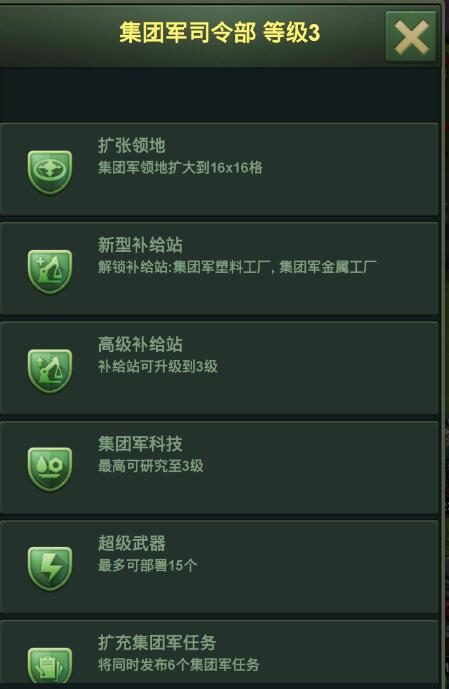 指挥中心位于集团军防区内时,将会获得增益: