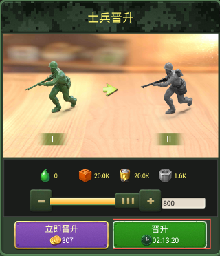 士兵晋升是把低级兵升级成高级兵的功能