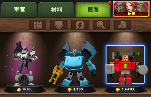 当您的军官碎片数量足够时,图鉴标签上将会有红点提示。您可以在军官图鉴中, 将碎片合成为完整军官。