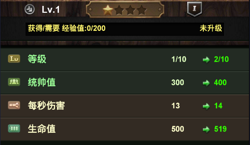 1星军官等级上限10级。