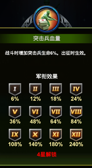 根据晋升后的星级,军官可以解锁对应的强力技能。