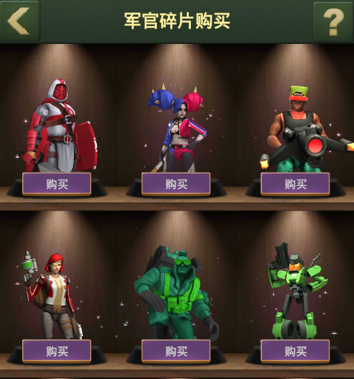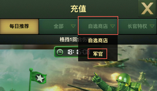 注意: 在礼包界面选择"“自选商店"--军官"分类可快速购买列表内的任意军官的碎片