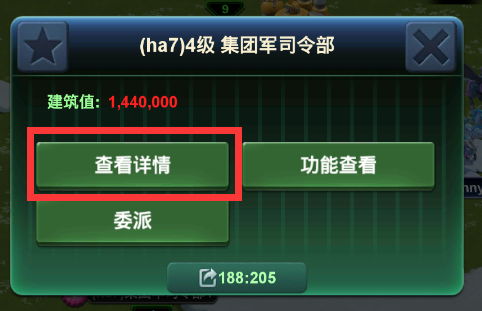 1、在战场地图点击想要回收的集团军司令部,选择查看详情