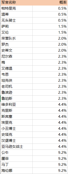 注意:以上概率为常规概率,活动期间概率变动敬请关注活动预告。