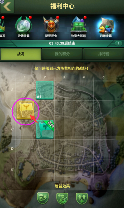 2.活动界面-战况中与己方阵营相连的战场方块四角有特殊标记