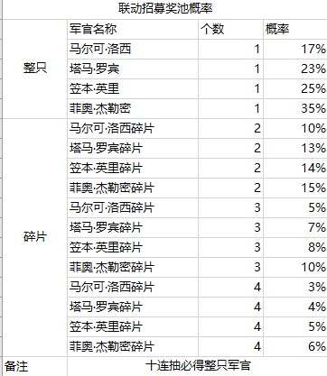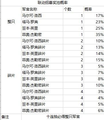 联动招募奖池概率