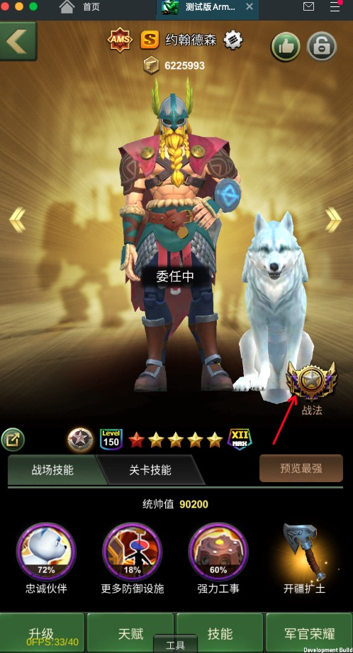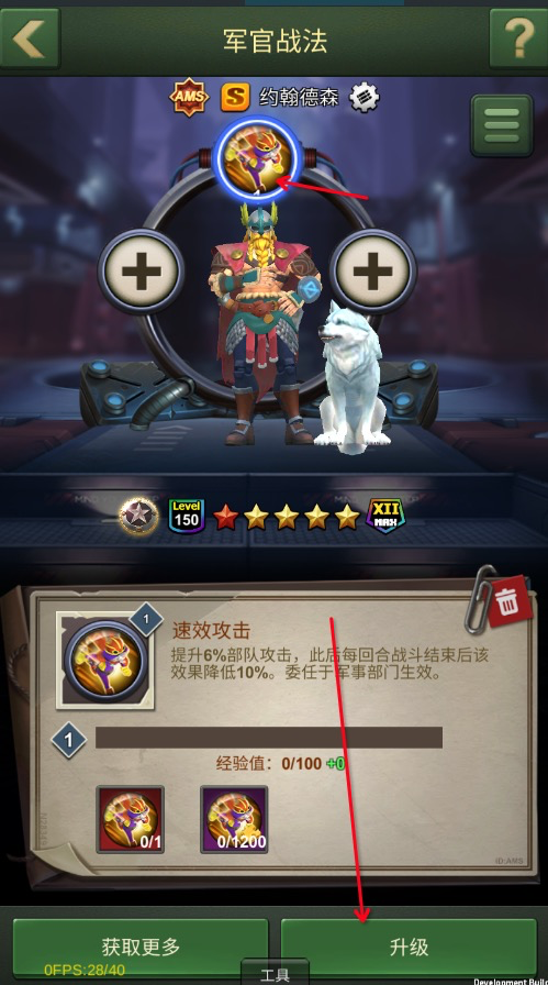 战法升级:选中已学习的战法槽位,可使用战该战法和战法碎片对其升级,等级越高,战法属性越高。