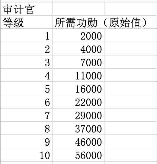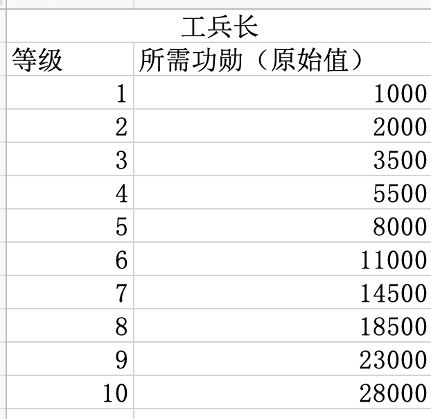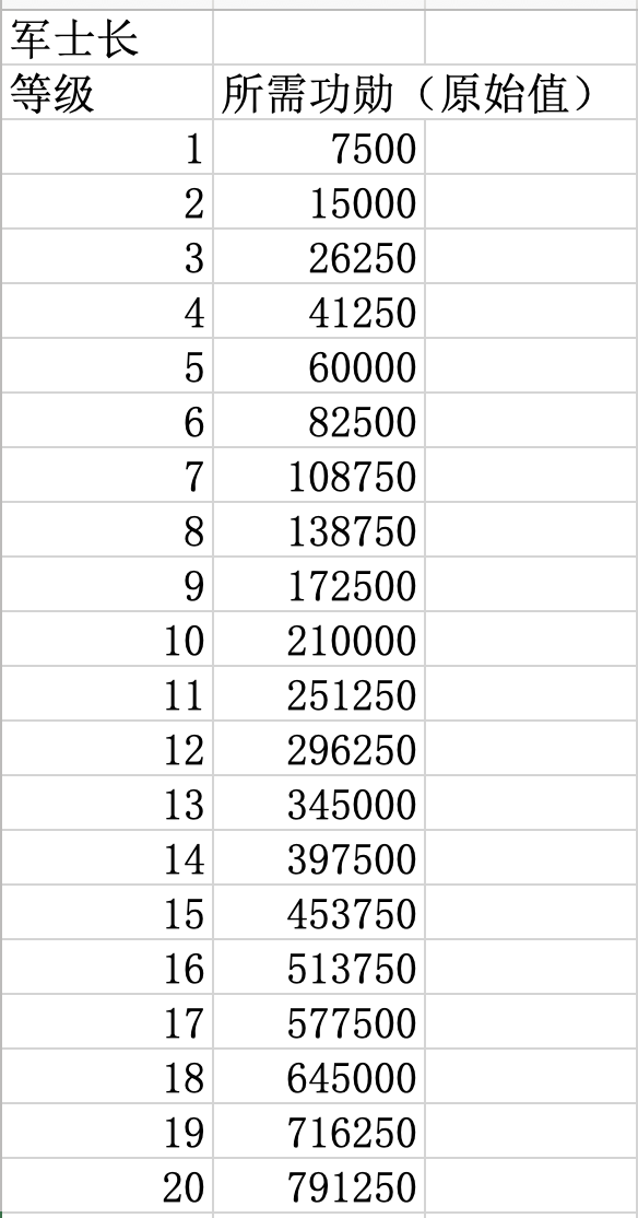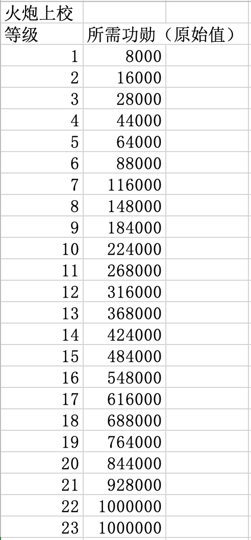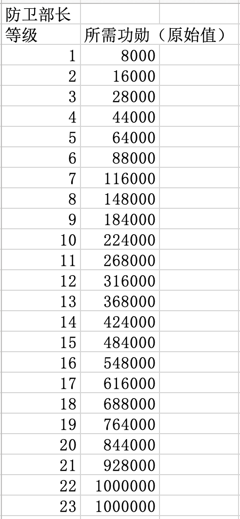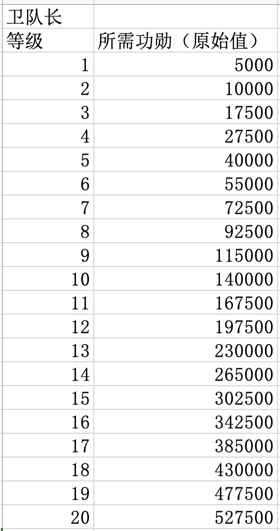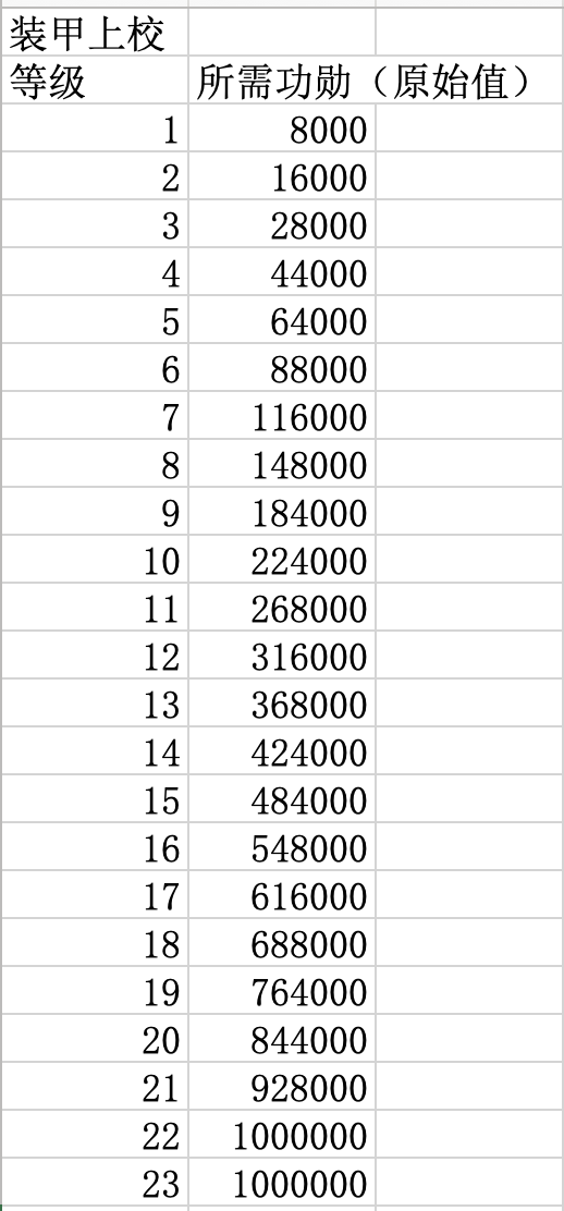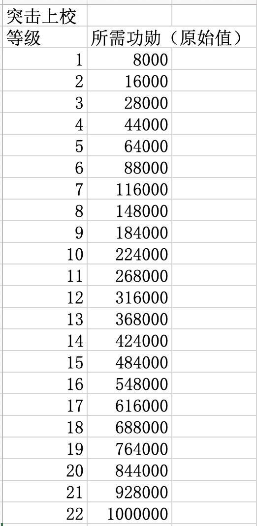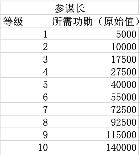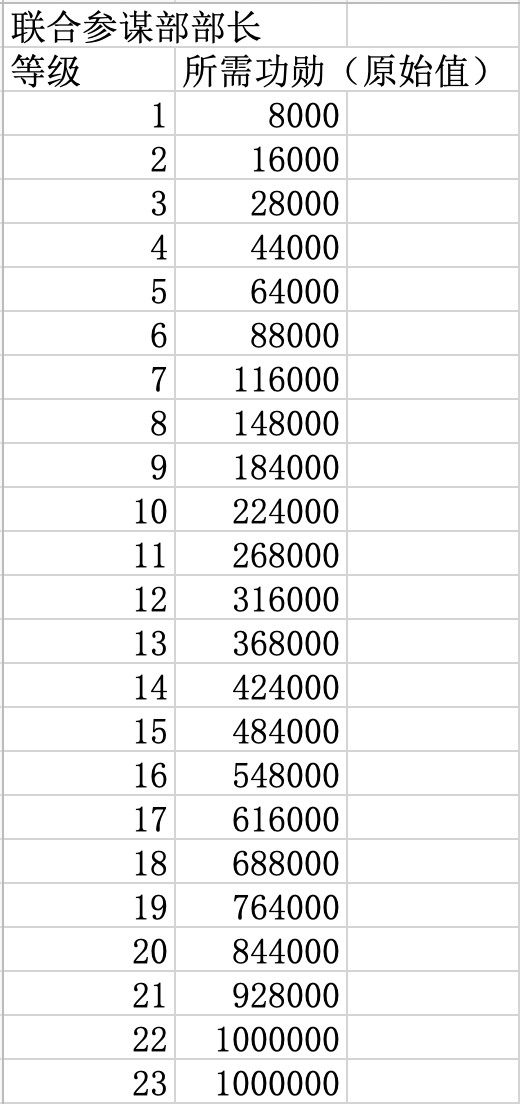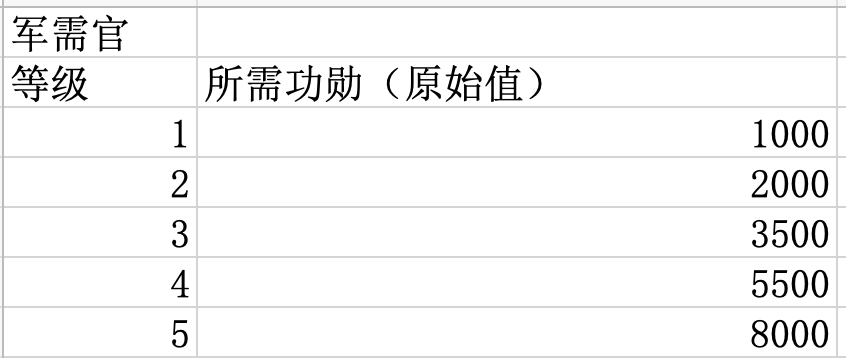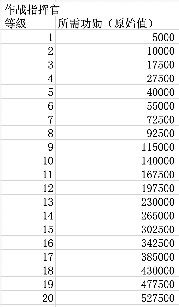 升级指挥官职所需功勋数量