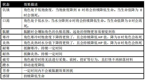 角色在特定环境和情况下会有不同状态加成。如玩家走进沼泽时会获得减速debuff,效果持续到玩家走出沼泽。