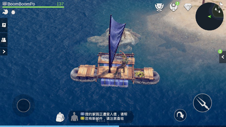 当您修好小船后并完成指定任务,靠近小船即可出现交互按键,点击交互按键即可开船。操作左侧摇杆即可控制小船行驶。
