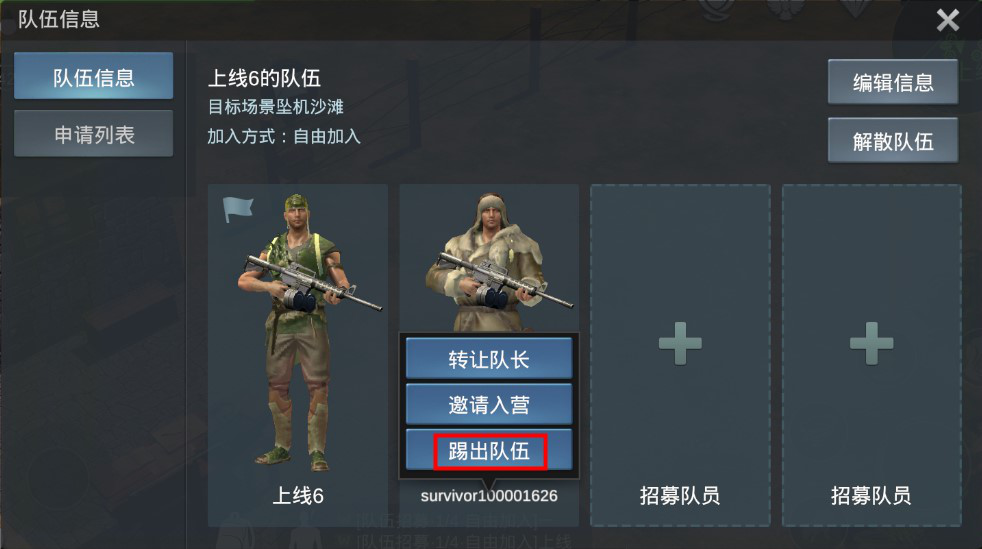 当您想要踢出队员时可以点击队员,然后点击弹出的踢出队伍将其踢出。