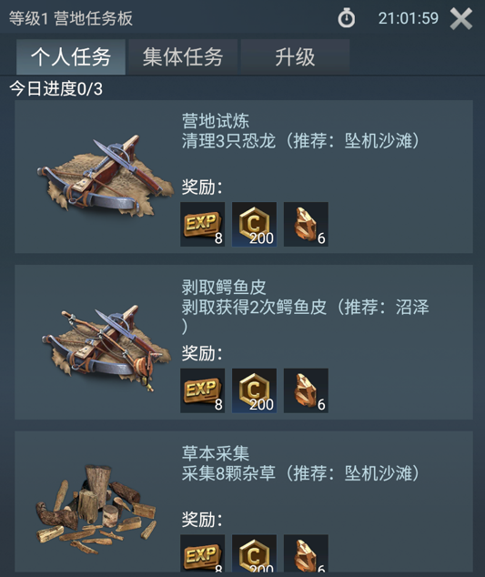 个人任务可由个人接取,完成后玩家将获得奖励,每天可选择完成3个任务。