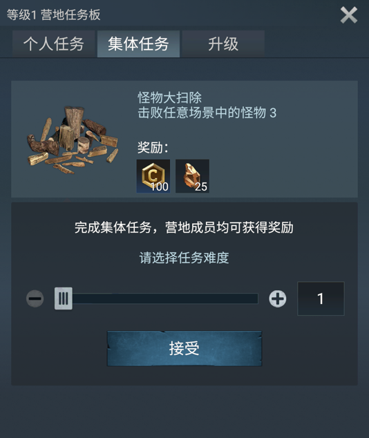 营地任务板主要用于接取营地发布的个人任务和集体任务。