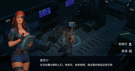 拍卖行位于曙光镇西南角的一艘废弃货轮上。与拍卖员赛希尔对话可进入交易界面。
