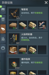 当玩家拥有足够的设施建造材料时,点击建造模式标签页中指定的设施可进行建造。