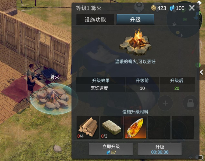 设施分为多个等级,消耗相应材料可对设施进行升级,以获得更多加成或解锁更多的制作种类。