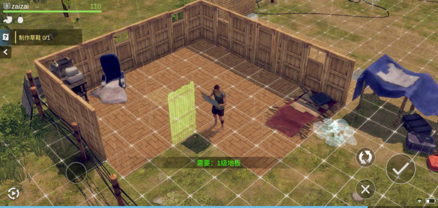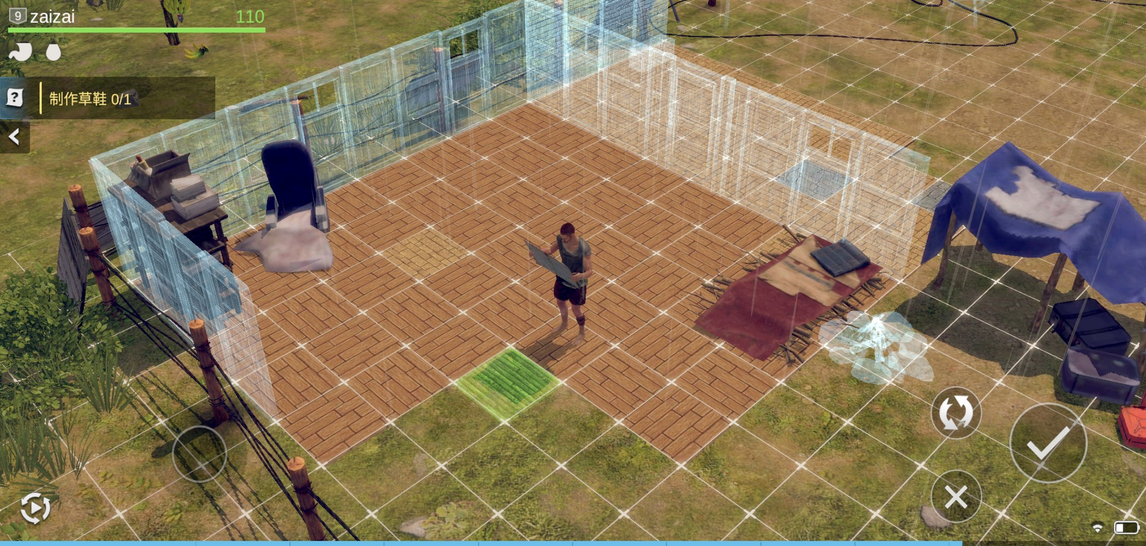- 玩家可通过点击“对勾”按键将建材放在可建造区域内;