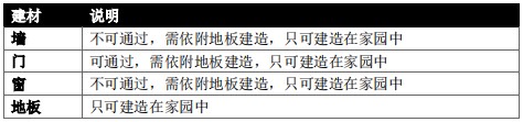 地板需放置在可建造的空地上,墙/门/窗则需依附地板建造。