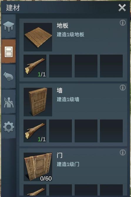 不同等级的墙/门/窗建造所需至少不低于同等级的地板,如3级墙需建造在至少3级的地板上。