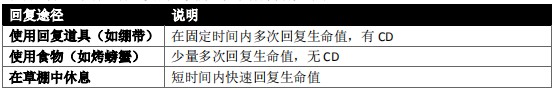 在游戏中玩家有3种主要的回复方式,具体内容见下表: