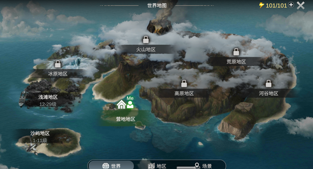 已解锁的区域对玩家可见,未解锁的区域被云雾遮挡,需要提升无线电等级逐步解锁。
