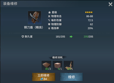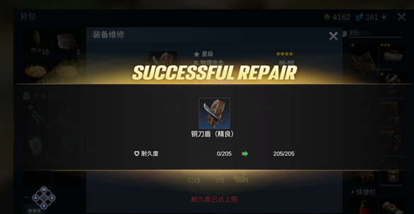 3. 玩家可选择消耗材料或花费水晶维修武器或装备。
