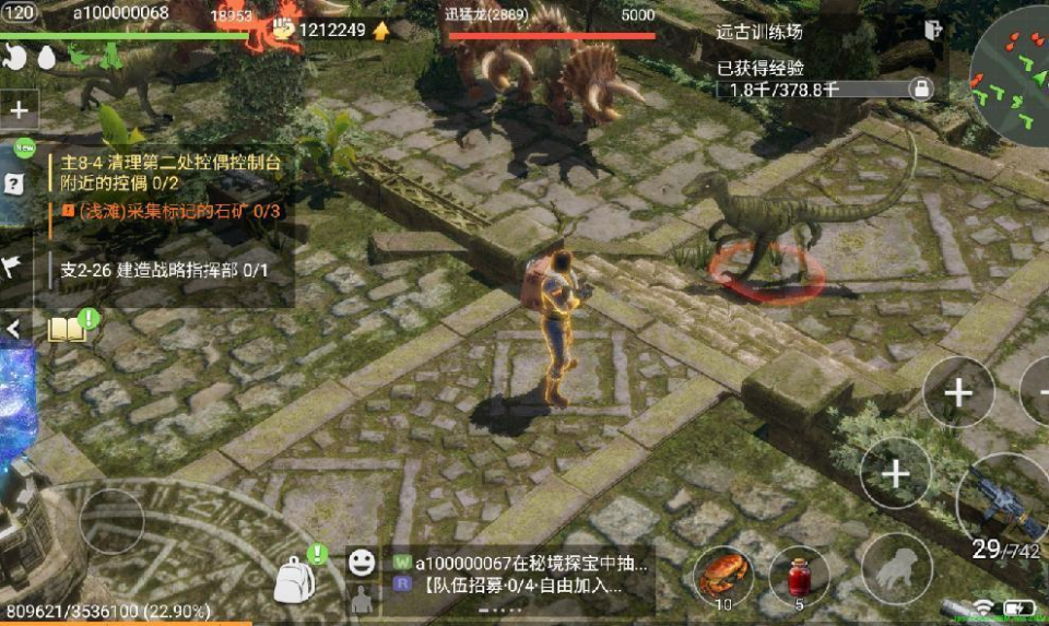 远古训练场可组队进入,如玩家没有队伍,则在进入时自动进入其他级别相似玩家队伍。