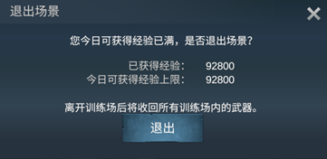 玩家在训练场内获得达到上限的经验值后,需玩家手动离开训练场。
