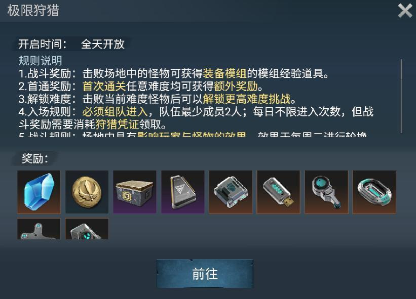 阅读规则及查看奖励后可进入极限狩猎场景。
